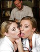 Мужик, проходя мимо комнаты девочек, услышал сладкие стоны, приоткрыв дверь, приятель спалил двух молодых лесбиянок, которые сидя на столе, лижутся между собой. Он подошел к ним ближе, посмотрел как сучки целуются и предложил по сосать свой уже возбужденный член. Малышка опустившись вниз, нежными ручками и языком ласкают торчащий из штанов мужской член. Облизав мужской прибор со всех сторон, начали подставлять под него свои бритые киски. Чувак по очереди трахает сочных девушек в их мокрые дырочки. Он был так рад, что спалил лесбиянок и оттрахал их промеж ног.