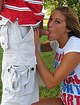 Опрятная девушка сосет в парке хуй