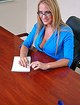 Преподавательница обомлела от комплиментов студента со спортивным телосложением, которого она позвала в кабинет для беседы. Блондинка не стала отказываться от возможности получить хороший секс, и сразу же вывалила большие сиськи наружу, присев предварительно в кресло перед красавчиком. Дамочка развела колени и показала трусики, от вида которых парниша сразу же стал целовать наставницу в губки и мять ей большую грудь. Соковитая географичка прилегла на стол и дала поебать в пизду, ощущая лучшие моменты в спонтанном трахе.