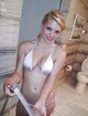 Светловолосая девушка под душем моет член любимого